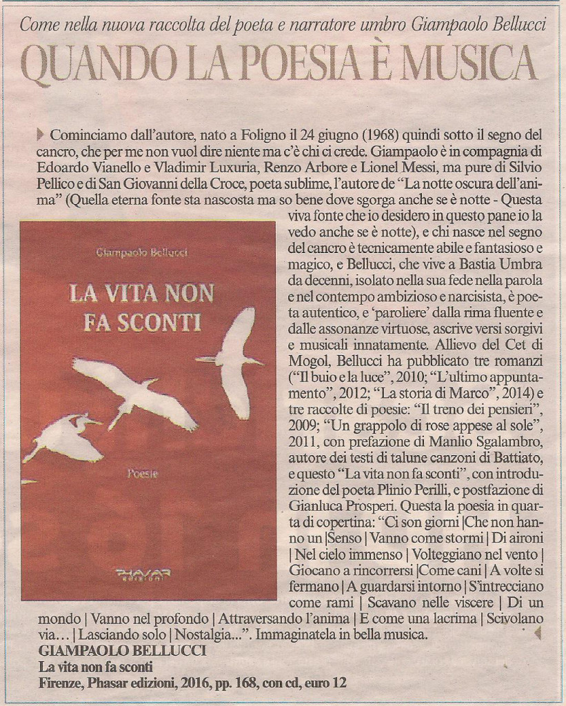 La vita non fa sconti poesie di Giampaolo Bellucci