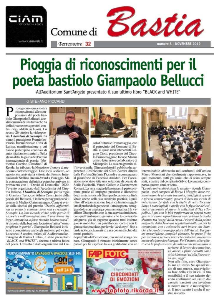 Raitre TGR Umbria – Buongiorno Regione 13 Novembre 2019 – Rubrica Tuttolibri, recensione di Mino Lorusso sulla nuova silloge poetica Black and White del poeta bastiolo Giampaolo Bellucci